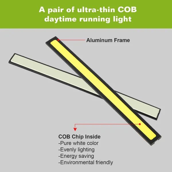 2Pcs LED Daytime Running Lights Car LED COB DRL Fog Lights IP45 Waterproof LED Strip Fog Day Driving Lamp Sticker For 12V Car Interior Exterior Use