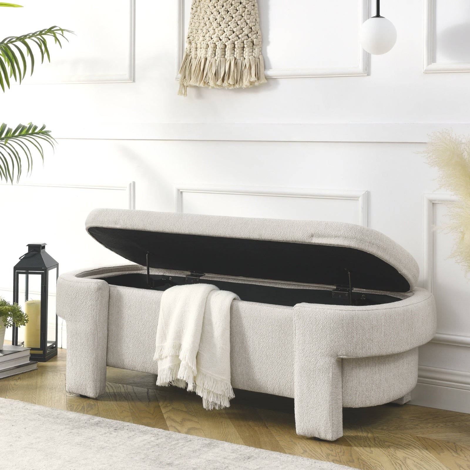 Linen Fabric Bench With Large Storage For Living Room, Entryway, Bedroom