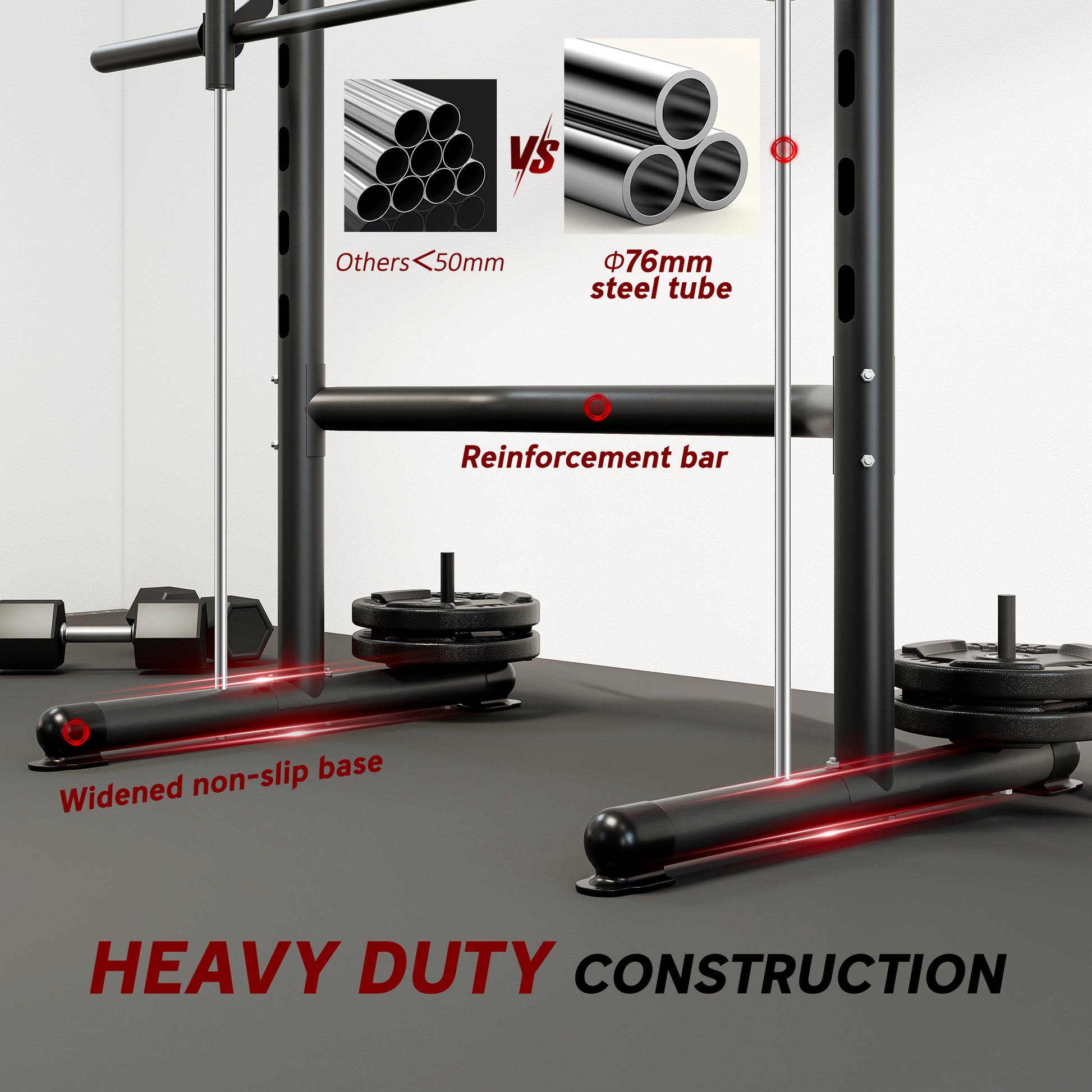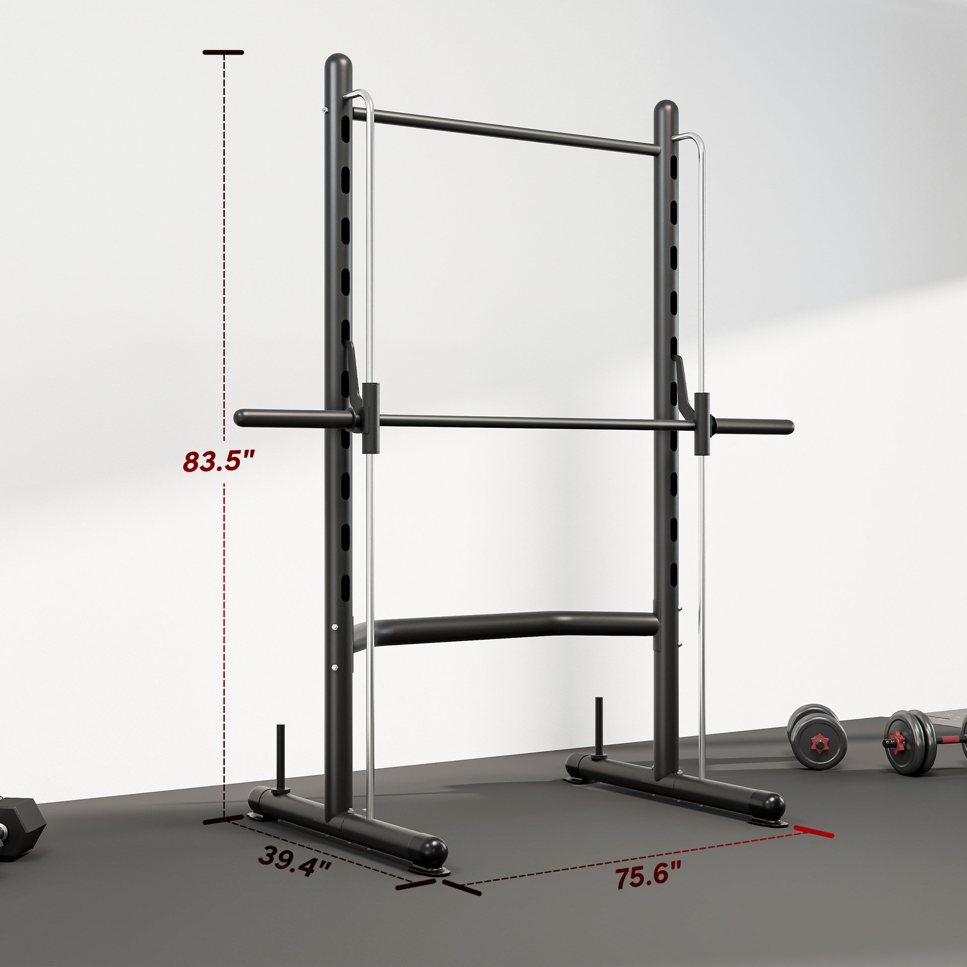 Elevate your workouts with the Soozier half-rack workout station, designed for a wide range of exercises. Adjustable to suit your height, this versatile rack supports squats, bench presses, pull-ups and more. Built with a solid steel frame and stabilising rubber feet, the barbell rack stays solid and secure during training. Great for building muscle and staying active, it helps you target multiple muscle groups and reach your fitness goals in the comfort of your home. Features: - Combination barbell rack stand, pull-up bar, and barbell bar - 10-level adjustable rack height for barbell - Easy and convenient storage for weight plates, offering a place for two stacks - Barbell bar fits all 2" or 1" hole Olympic or standard weight plates - Suitable for home, office, and gym - Steel frame with a powder-coated paint for strength and durability - Assembly required Specification: - Color: Jet Black - Material: Steel - Overall Dimensions: 75.5" L x 39.25" W x 83.5" H - Pull-Up Bar Dimensions: 42.25" L, 78.75" H - Barbell Bar: 0.98" Dia. x 75.5" L - Removable End Caps: 1.96" Dia. - Barbell Rack Height: 19.75" - 69" H - Weight Capacity: 264 lbs. (Pull-Up Bar), 220 lbs. (Barbell Bar) - Item Label: A91-218 Package Includes: - 1 x Barbell Rack - 1 x Manual Make the most of your exercise routine with the Soozier half-rack workout station. Great for multiple types of exercises, the rack can be adjusted to suit your height and can handle squats, bench presses, pull-ups, and more. The barbell rack's steel frame is solid and stable, with rubber feet to keep the stand from sliding. Great for keeping active and building muscle, you'll be able to target multiple muscle groups and achieve your fitness goals from the comfort of your home. Features: - Combination barbell rack stand, pull-up bar, and barbell bar - 10-level adjustable rack height for barbell - Easy and convenient storage for weight plates, offering a place for two stacks - Barbell bar fits all 2" or 1" hole Olympic or standard weight plates - Suitable for home, office, and gym - Steel frame with a powder-coated paint for strength and durability - Assembly required Specification: - Color: Yellow - Material: Steel - Overall Dimensions: 75.5" L x 39.25" W x 83.5" H - Pull-Up Bar Dimensions: 42.25" L, 78.75" H - Barbell Bar: 0.98" Dia. (Barbell Bar) - Item Label: A91-218V00YL Package Includes: - 1 x Barbell Rack - 1 x Manual Make the most of your exercise routine with the Soozier half-rack workout station. Features: - Combination barbell rack stand, pull-up bar, and barbell bar - 10-level adjustable rack height for barbell - Easy and convenient storage for weight plates, offering a place for two stacks - Barbell bar fits all 2" or 1" hole Olympic or standard weight plates - Suitable for home, office, and gym - Steel frame with a powder-coated paint for strength and durability - Assembly required Specification: - Color: White - Material: Steel - Overall Dimensions: 75.5" L x 39.25" W x 83.5" H - Pull-Up Bar Dimensions: 42.25" L, 78.75" H - Barbell Bar: 0.98" Dia. (Barbell Bar) - Item Label: A91-218V00WT Package Includes: - 1 x Barbell Rack - 1 x Manual Make the most of your exercise routine with the Soozier half-rack workout station. Features: - Combination barbell rack stand, pull-up bar, and barbell bar - 10-level adjustable rack height for barbell - Easy and convenient storage for weight plates, offering a place for two stacks - Barbell bar fits all 2" or 1" hole Olympic or standard weight plates - Suitable for home, office, and gym - Steel frame with a powder-coated paint for strength and durability - Assembly required Specification: - Color: Red - Material: Steel - Overall Dimensions: 75.5" L x 39.25" W x 83.5" H - Pull-Up Bar Dimensions: 42.25" L, 78.75" H - Barbell Bar: 0.98" Dia. (Barbell Bar) - Item Label: A91-218V00RD Package Includes: - 1 x Barbell Rack - 1 x Manual.